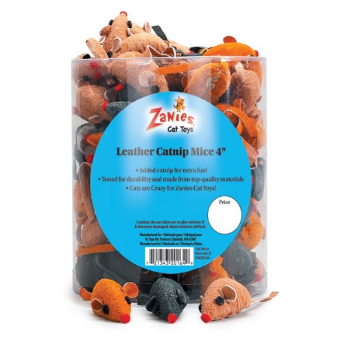 Buy Now! 120 Zanies Leather Rattling Catnip Mice (in Canister) Cat Toy