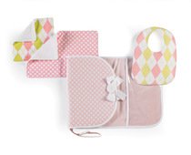 - This 4-piece changing mat set includes a mat, wash cloth, bib, and burp cloth that all fit together to make a welcome baby gift